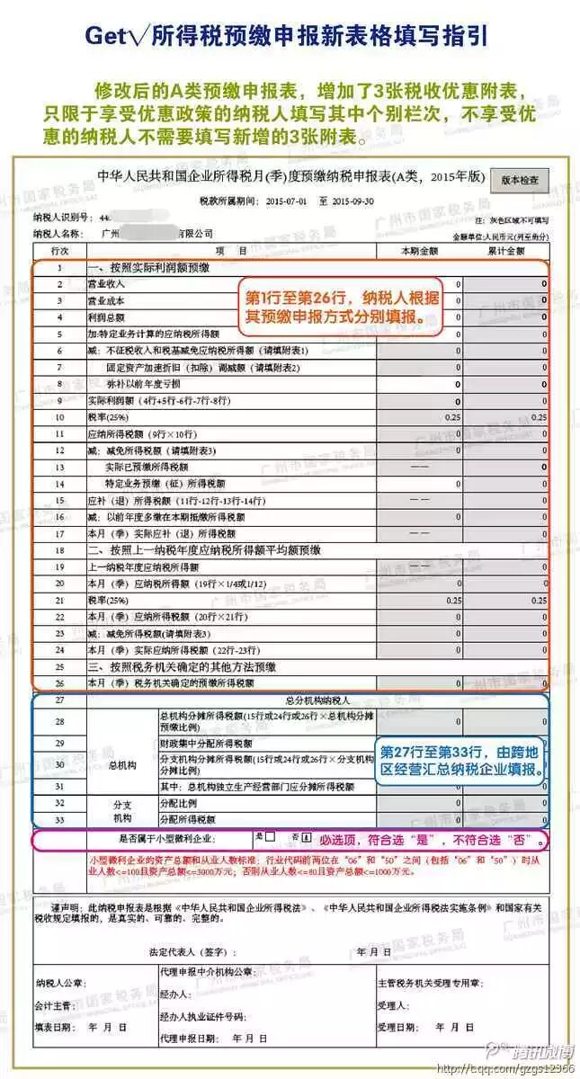 从第三季度所属期起,您需要用新的企业所得税预缴申报进行申报。填表指引,戳图即知!